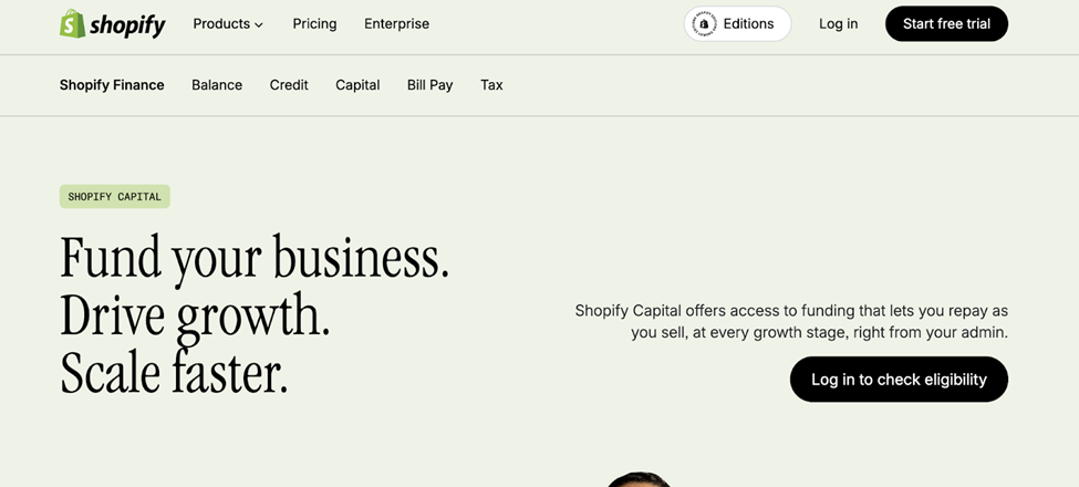 3. Shopify Capital (Best for Shopify sellers scaling SKUs)